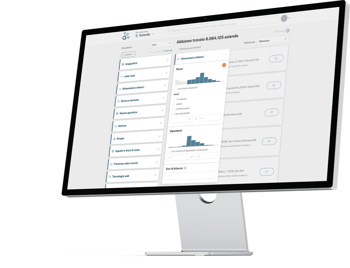 Sfrutta l’intelligenza di Atoka Sales per ottimizzare e ridurre i tempi di ricerca di clienti o fornitori.