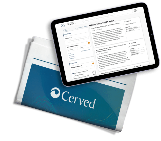 Il patrimonio informativo più completo del mondo B2B che incrocia la qualità dei dati Cerved con centinaia di fonti alternative tra cui news, web, social, blog e open data.